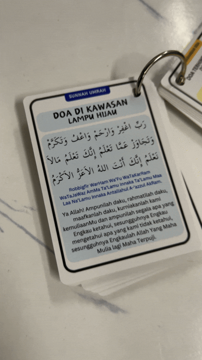 Ya, kad ini disusun step by step bermula dari niat, tawaf, sa’ie, sehinggalah doa-doa penting. Ia ringkas tetapi padat, sesuai untuk rujukan semasa di Tanah Suci.